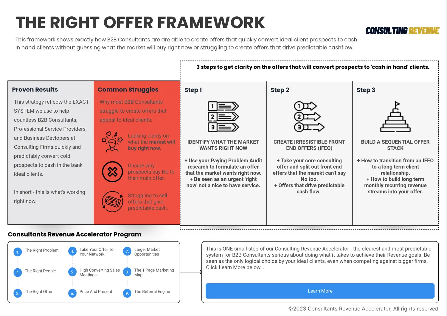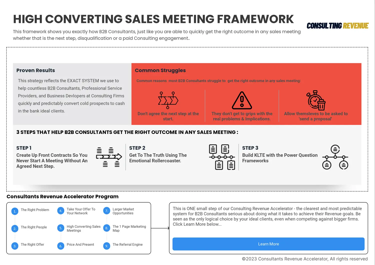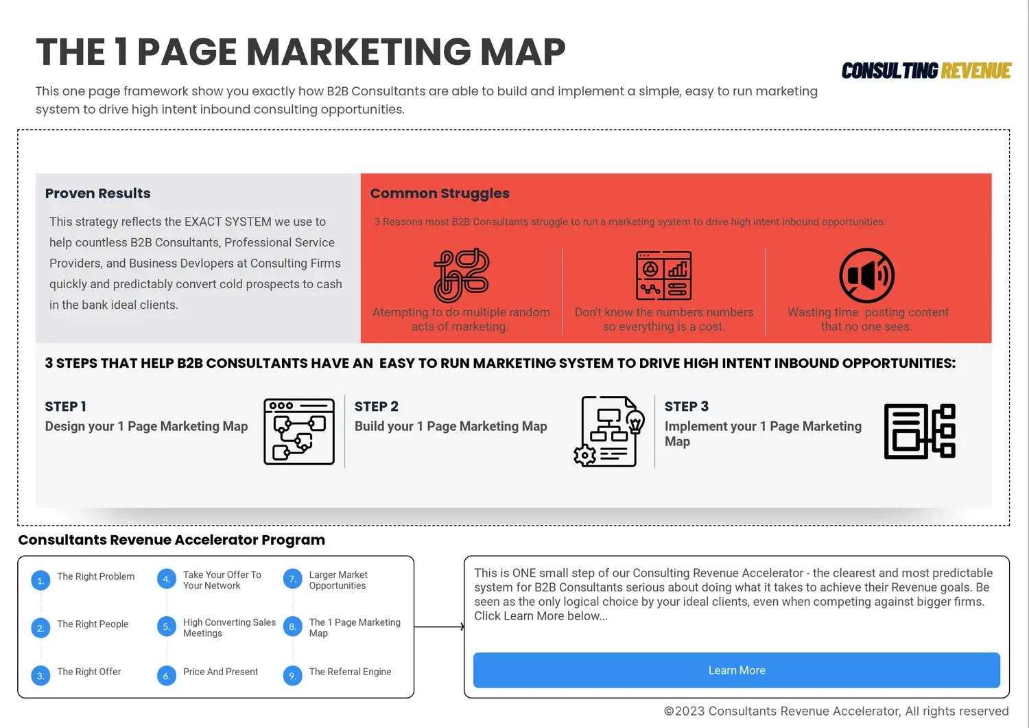 Most systems on the market give you generic tactics or quick fixes, but they don’t show you how to turn those tactics into a consistent, long-term strategy. You don’t need another vague roadmap—you need a clear, proven framework that works for your consulting business.