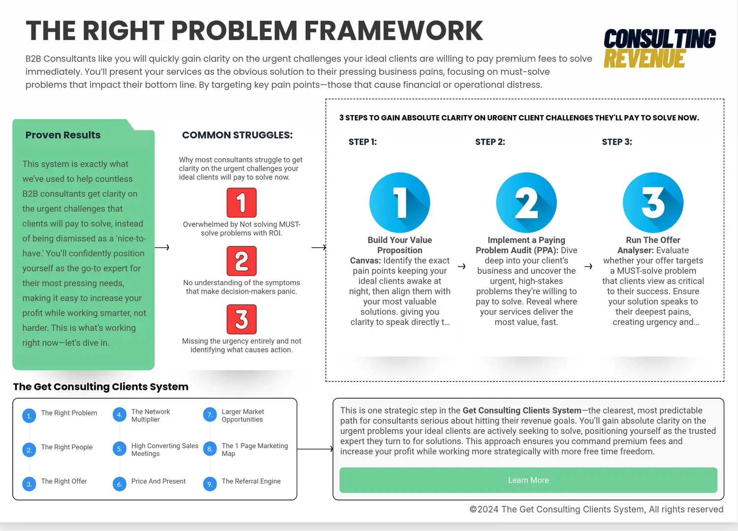 This is what my 'Get Consulting Clients' system is built to do. It’s not about working harder or grinding yourself into the ground—it’s about working smarter by focusing on the strategic actions that actually get results.