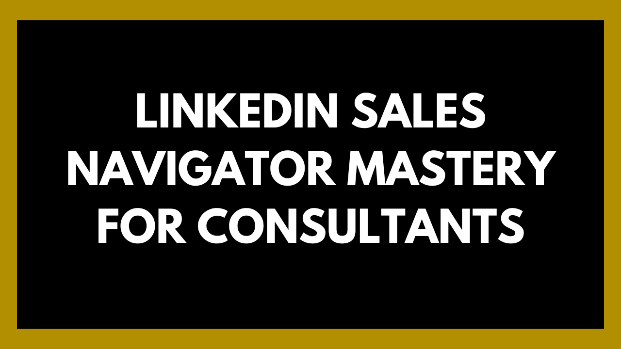 Linkedin Sales Navigator is the single biggest impact tool on your ability to win and retain clients, speaking opportunities and build your brand. In this Master Class you'll discover exactly how Consultants can maximise the returns from this powerful tool.